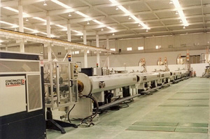 排水管生產線8條,生產品種有HDPE雙壁波紋管、鋼帶增強聚乙烯(PE)螺旋波紋管、HDPE中空壁纏繞管;